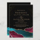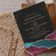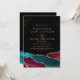 Turquesa de casamento moderna e ouro poeirento negro com linha prateada, escrita clássica, caligrafia elegante e minimalista ( imitação de pó prata e ouro). Um belo e elegante convite de casamento, simples e moderno.