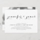 Para casais que querem um convite de casamento simples, mas elegante, design com elementos modernos com código QR para o RSVP e site de casamento e sua foto de noivado no verso do cartão. Elke Clarke © A design apresenta os nomes da noiva e noiva em uma letra elegante. Mostrado com uma foto em preto-e-branco, mas adicione sua própria foto de noivado em preto-e-branco. Personalize-o para se adequar às cores do seu casamento para o texto e o fundo. Adicione qualquer outro gráfico, foto ou monograma para personalizar este modelo.