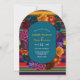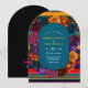 Negrito, festivo, e cheio do encanto moderno, este Convite para Casamento de Arco das Flores Modernas Mexicanas captura a alegre essência de uma festa. Enquadrado com florescências vibrantes inspiradas no México em tons ricos de vermelho, laranja, magenta e turquesa, o design é colocado sobre um fundo listrado colorido que lembra os padrões tradicionais da serpente. A tipografia limpa e contemporânea traz um equilíbrio na moda para os elementos vivos, fazer este convite perfeito para casais que querem honrar a cultura com uma reviravolta nova e moderna. Uma maneira impressionante de dar o tom para um dia de casamento alegre e inesquecível.