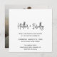 Convite de casamento quadrado moderno com um simples design com seus nomes em uma tipografia de script elegante e seus detalhes de evento em uma fonte minimalista sans serif. Todos os elementos de design na frente estão em preto e branco e a parte de trás tem sua foto favorita. Este convite de casamento chic funciona bem com qualquer estilo de casamento.
