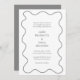 Convite de casamento contemporâneo com um design divertido com os detalhes do seu evento em um simples dentro de layout de um quadro desenhado à mão. A paleta de cores é cinza / cinza sobre um fundo branco e pode ser alterada na ferramenta de edição design. A forma orgânica do quadro ondulado e o tom neutro deste convite fazem dele uma escolha excelente para um casamento moderno.