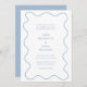 Convite de casamento contemporâneo com um design divertido com os detalhes do seu evento em um simples dentro de layout de um quadro desenhado à mão. A paleta de cores é azul empoeirada sobre um fundo branco e pode ser alterada na ferramenta de edição de design. A forma orgânica do quadro ondulado e o tom macio e úmido de azul claro deste convite fazem dele uma escolha excelente para um casamento moderno de primavera ou verão.