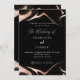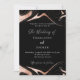 Um fundo negro. Decorado com veias rosa de mármore. Personalize e adicione seus nomes e detalhes da festa. Texto branco.
