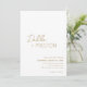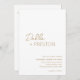 Ouro falso moderno, tudo em um convite de casamento, com um design simples e mínimo com o nome da noiva em um roteiro elegante e o nome do noivo em uma fonte sans serif contemporânea. Abaixo, no canto inferior direito, estão os detalhes do evento em um layout minimalista. A parte traseira tem seus detalhes adicionais e o Código QR, para que você possa ignorar a placa do compartimento e a placa RSVP.