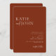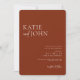Convide seus amigos e entes queridos para o seu casamento moderno com este convite de vibe rústico com cartas de caligrafia e fundo de terracota. Personalize os detalhes do casamento e o monograma no fundo.