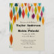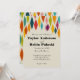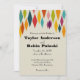Adicione um toque retrógrado colorido ao seu casamento ou outro evento especial com estes convites para casamento inspirados modernos do século médio. O design de estilo vintage apresenta formas de diamante em cores quentes ricas de azul lacrimogêneo, verde limão, laranja, amarelo ensolarado, rosa, magenta e roxo contra um fundo colorido de creme claro.