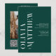 Convite de casamento e detalhes modernos e verdes com fotos + código QR no verso. Entre em contato comigo se precisar de itens adicionais.