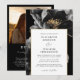 Este convite de casamento floral preto e dourado elegante pode ser personalizado com suas informações em tipografia moderna e os detalhes do seu casamento no verso, junto com o código QR do site do seu casamento e foto especial. Projetado por Thisisnotme©
