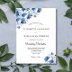 Lindas flores azuis florais neste elegante convite de casamento moderno. Todos os campos são editáveis para que você insira suas próprias informações.
