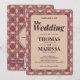 Celebre sua união com este convite de casamento moderno em terracota e rosa pó com Arte Deco. Com um padrão geométrico interligado quente e terroso, este design combina elegância arquitetônica com tons de pôr do sol boho-chic. Inclui um código QR funcional para RSVPs digitais fáceis e acesso ao site do casamento.