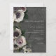 Este belo design de convite para casamento apresenta um spray cativante de lavandas pálidas, anêmonas e rosas brancos, verdes e cor-de-rosa pálidos, arranjados de forma artística contra uma cinza de carvão negro luxuoso com efeito maleável. A tipografia branca moderna e limpa acrescenta um toque de elegância, fazer este convite a escolha perfeita para um casamento romântico e sofisticado. Criado pela imprensa simplesmente de farmácia.