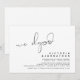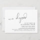 Este é o cartão de convite da festa de casamento fuga, com design de script preto minimalista / minimalista (Surpresa, nós fugimos)
