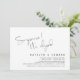 Este é o convite do cartão da festa de casamento com design de letra minimalista / minimalista preto (Surpresa, nós fugimos)