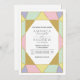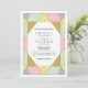 Convite de casamento moderno geométrico abstrato jóia pedra preciosa. Este convite de casamento contemporâneo moderno apresenta triângulos em rosa claro, verde menta, amarelo claro, cor-de-rosa e dourado. Os triângulos têm contornos impressos FALSO que parecem brilhar ou folha de ouro e formam uma jóia abstrata.