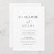 Este elegante convite de casamento apresenta fontes serif modernas e sans serif junto com caligrafia para uma aparência chic e mínima. O uso de fontes aliadas ao layout simples garante que esse modelo emita uma estética clássica refinada. Personalize esta peça com seus nomes e detalhes do evento.