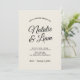 Este convite de casamento é perfeito para o seu casamento com design único. Um convite de modelo de casamento simples e elegante e minimalista. Que apresenta um plano de fundo cremoso branco. E os primeiros nomes da noiva e noiva negros e brancos. E informações editáveis. Barato e é também um e-convite eletrônico digital se você quiser enviá-lo por texto ou email. Todas as informações são personalizáveis clicando no botão personalizar. Então pegue-o e faça-o seu para que você faça você convidar noivos e excitados.