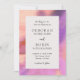 Convite de casamento moderno com um design simples, mas elegante, com os detalhes do seu evento rodeados por uma borda num padrão abstrato vibrante. Este convite inspirado nas cores do pôr do sol no deserto é ótimo para um casamento de verão.