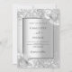 Fundo de aspecto fino prateado decorado com flores, flores e brilho fino prateado, brilhos. Personalize e adicione seus nomes e detalhes do casamento. Letras negras.