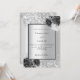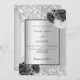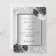 Fundo com aspecto fino prateado decorado com flores, flores e falso confete prateado. Personalize e adicione seus nomes e detalhes do casamento. Letras negras.