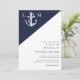 Este convite de casamento minimalista náutico azul marinho e branco pode ser personalizado com suas informações em tipografia moderna e todos os detalhes do seu casamento no verso. Criado por Thisisnotme©