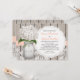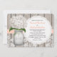 Os convites monogrammed do CASAMENTO do frasco de pedreiro do estilo rústico bonito com as flores brancas do hydrangea e uma cor damasco de madeira da cerca e da antiguidade atam o fundo e o olhar coral costurado da fita da luz pálida do pêssego projeta. Estes convidam podem ser personalizados com as iniciais e o monograma dos noivos no frasco de pedreiro. Estes convidam são perfeitos para um país, uma casa da quinta, um partido de jardim ou um casamento do estilo do barnyard. Projetado por Chrissy H. Estúdio, LLC. Todos os direitos reservados.