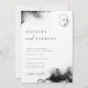 Convocação de Casamento Minimalista de Moody Black Watercolor. Tipografia preta sobre fundo branco com fundo preto.