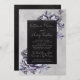 Convite para Casamento Floral Escuro - apresenta cinzas leves e fundo texturizado preto com flores roxas e cinzas e fontes góticas. Perfeito para qualquer casamento de outubro ou Halloween. Coordena-se com a coleção Floral Escura.