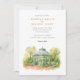 Convide seus hóspedes para uma bela celebração de jardim com este elegante convite para casamento em aquarela, apresentando o impressionante conservatório no Jardim Botânico de Denver (Woodland Mosaic Solarium). O trabalho de arte representa lindamente a clássica estufa com sua intrincada armação em tons suaves e azuis-verdes e um teto abaulado, cercado por um jardim luxuoso e vibrante. Um encantador caminho de tijolos castanho-avermelhado leva o olho em direção à estrutura. O conservatório está aninhado entre uma variedade de folhagem verde, incluindo árvores maiores com folhas verdes-claras e verdes-amareladas, vários arbustos verdes, e plantas com vaso distinto como agaves pontiagudas ou yucas em potes de terracota. As gotas deliciosas com pontas amareladas acrescentam ao encanto botânico. Criado em estilo aquoso romântico, este convite é perfeito para amantes da natureza, casamentos de jardim ou aqueles que buscam um tema sereno e elegante. A frente apresenta elegantemente seus detalhes de casamento, enquanto o lado inverso oferece "Os detalhes mais finos" para informações adicionais sobre convidados. A paleta de cores inclui os bronzes moles, os verduras azuis, uma variedade de verdes frescos, verdes amarelados, vermelhos quentes e castanhos para o caminho e potes, e tons sutis de fundo.