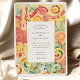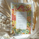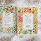 Celebre seu dia especial com este vibrante convite de casamento inspirado pela artista de Barcelona. Apresentando um impressionante design de aquarela mosaico, o convite é preenchido com padrões giratórios, azulejos florais e formas ousadas que lembram a arquitetura icônica de Antoni Gaudí e Park Güell. A frente mostra turretas brancas e linhas orgânicas em tons ricos de chá, açafrão, coral e esmeralda. Um lagarto mosaico brincalhão enfeita as costas, trazendo encanto mediterrânico. Perfeito para casamentos de destino em Barcelona ou casais desenhados para designs coloridos, artísticos e inspirados na natureza.