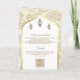Encontrem seus hóspedes com este convite de casamento dobrado ao estilo islâmico, com um elegante padrão paisley e o 'Bismillah' na caligrafia árabe com o Código QR para RSVP online. Basta adicionar os detalhes do seu evento neste modelo fácil de usar para torná-lo um convite de tipo único.