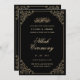 Convidado de Casamento Nikah, muçulmano islâmico de luxo. Cartão preto com design de canto barroco estilo vintage. Há duas fontes de script em cor dourada na placa frontal. Você pode personalizar todas as informações relacionadas à cerimônia escrita no cartão. Adicione texto na segunda placa. O envelope branco do vazio está incluído. Entre em contato com o designer para adicionar produtos nesta coleção.