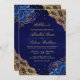 Encontrem seus convidados com este elegante tudo em um convite de casamento islâmico com lindas flores azuis e um lugar intrincado com o Código QR para RSVP on-line. Basta adicionar os detalhes do seu evento neste modelo fácil de usar para torná-lo um convite de tipo único.