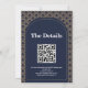 Encontrem seus convidados com este elegante tudo em um convite de casamento islâmico com lindas flores azuis e um lugar intrincado com o Código QR para RSVP on-line. Basta adicionar os detalhes do seu evento sobre este modelo fácil de usar para torná-lo um convite de uma espécie, perfeito para aqueles que seguem o islã e até para pessoas não-muçulmanas. Este belo convite para o casamento apresenta uma bela fotografia de um solteiro de azul real enfeitado A design apresenta um roteiro de caligrafia rico com um longo fazer de cauda encaracolada, moderno e clássico. Uma maneira elegante, sofisticada e chique de convidar seus amigos e família para compartilhar seu dia especial. A parte traseira do cartão tem um código QR para o seu site de casamento e uma breve nota instruindo as pessoas a visitar o site para obter detalhes e RSVP.