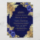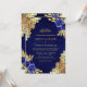Encontrem seus convidados com este elegante tudo em um convite de casamento islâmico com lindas flores azuis e um lugar intrincado com o Código QR para RSVP on-line. Basta adicionar os detalhes do seu evento neste modelo fácil de usar para torná-lo um convite de tipo único.