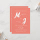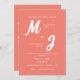 Monograma de Casamento Tudo-em-Um de Coral Rosa Moderno. Personalize com as iniciais da noiva e do noivo, e primeiro e sobrenomes com este convite de casamento de estilo monograma na frente, e adicione todas as suas informações futuras sobre o casamento, como detalhes de recepção e acomodações, na parte traseira do cartão. Você também pode alterar cores e posicionamento do texto clicando em "personalizar este modelo" e, em seguida, "editar usando a ferramenta design." Envie uma mensagem ao designer se precisar de mudanças no fazer de ajuda.