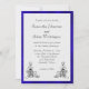 Um convite de casamento elegante e clássico, mas muito contemporâneo, azul e branco, com uma dica de preto (na decorativa, a safra floresce nos cantos inferiores do cartão). Este convite impressionante também apresenta uma elegante tipografia negra que pode ser facilmente personalizada com seus próprios detalhes. Ao redor do texto está um quadro azul de veludo luxuoso (impresso apenas), que adiciona um toque de cor e luxo. O reverso da placa apresenta o impressão de veludo azul novamente, desta vez em toda a placa.