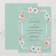 Este design apresenta um fundo verde espuma do mar tranquilo com um arranjo delicado de flora em flor. Rosas cor de pêssego suave e anêmonas azul pálido criam uma paleta de cores serena. Folhagens caprichosas e raminhos de eucalipto adicionam elegância natural. A exposição artística evoca uma atmosfera pacífica para uma cerimônia de verão ao ar livre.