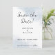 Este simples Save the Date de casamento de praia minimalista apresenta fontes clássicas e modernas em um fundo abstrato de aquarela inspirado no oceano em azul empoeirado e branco. Você pode personalizar facilmente este convite de casamento com tema oceânico com seus próprios detalhes usando este design temático oceânico e paleta de cores costeiras. É versátil e pode ser usado para combinar com muitas ideias e decorações de casamento com tema de praia. Esses convites de casamento de praia minimalistas e elegantes funcionam para casamentos tropicais, bem como casamentos náuticos em climas mais frios. Perfeito para casais que amam o mar (ou pinturas modernas de aquarela artística!).
