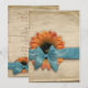 Este design é feito para parecer um girassol gigante do jardim de laranja amarrado com um arco de tartaruga aqua em papel antigo, drenado, antigo pergaminho. Esta é uma imagem plana, e não uma flor e arco real. Seria um convite perfeito para um casamento no campo, casamento ao ar livre, casamento orgânico ou outro evento especial relacionado à natureza. Casual, simples, mas na moda e único. Personalize-o com seus detalhes pessoais da cerimônia. Pontes botânicas.