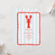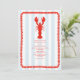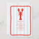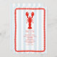 Ilustração de lagosta acima do texto vermelho. Fundo de faixa azul e borda vermelha do tabuleiro de xadrez.