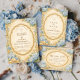 Um design de casamento romântico à beira-mar inspirado em celebrações clássicas à beira-mar. Hidrangeas azuis suaves em aquarela, conchas, detalhes de corda e pequenas âncoras náuticas enquadram um rótulo elegante rendilhado em um fundo de pergaminho quente. O estilo de ilustração vintage combina a elegância de um jardim botânico com elementos náuticos sutis, criando uma estética refinada à beira-mar perfeita para casamentos na praia, locais à beira-mar e celebrações inspiradas no oceano.