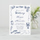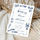 Convite Casamento Naval Azul Costeiro Desenhado à Mão Capr