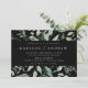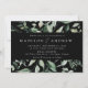 Convites de casamento botânico elegantes, com cor d'água luxuosa e verde-limpando seus detalhes de casamento com um fundo preto. Os convites de casamento verdes modernos invertem para mostrar um fundo negro sólido. Projetado para coordenar com nossa coleção de casamento Abundant Greenery.