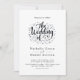 Este elegante convite de casamento preto e branco é perfeito para um casamento moderno. O simples design apresenta uma caligrafia preta elegante sobre um fundo branco limpo. O cartão de convite inclui os detalhes do casamento no verso, em vez de pagar um cartão separado.
