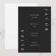 O convite de casamento preto e branco moderno e mínimo apresenta um tipo elegante e grande e um layout simples.