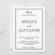 Um Convite para Casamento Negro e Branco minimalista apresenta um design moderno e elegante com uma paleta de cores monocromáticas. Linhas limpas, tipografia elegante e amplo espaço branco criam um eterno e um aspecto sofisticado. Perfeito para um casamento chic contemporâneo com um toque de elegância subestimada.