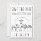 Um convite de casamento único para um casamento que acontecerá na bela terra do Brasil. Este convite apresenta uma ilustração estilizada da paisagem urbana única com seu nome embaixo. As informações do seu casamento são apresentadas em seguida em um estilo aberto correspondente. No verso do convite há uma cor cinza escuro para complementar a aparência e o sentimento. Todos os elementos individuais do cartão de convite são desbloqueados para que você possa alterar quaisquer detalhes necessários, como tamanhos de fonte, estilos e muito mais, usando a função de personalização. Você pode até adicionar uma foto dos futuros noivos no verso com um filtro preto e branco para combinar com a frente do cartão de convite. O que quer que você escolha, lembre-se de se divertir sendo criativo.