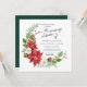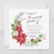 "Casamento no inverno Crescent Floral Wreath Invitation." Convite de formato quadrado. Simples. Moderno. Elegante. Ideal para um casamento no inverno de natal, de cor d'água, foi criado pela artista Audrey Jeanne Roberts. Apresentando: coroa ao estilo moderno da crescente decorada com flores de poinsettia vermelha, sagrada com bagas, amêndoa, flores rosa brancas selvagens com pínus cones e sprigs. Direitos autorais.