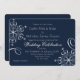 Casamento no inverno de floco de neve marinho convite azul para casamento com floco de neve decorativo com rico em texto branco e moderno para um único visual elegante, porém descuidado e caprichoso. Alterar o fundo deste belo e moderno convite de casamento no inverno definido para qualquer palete a cores de casamento no inverno.