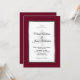 Convide seus convidados para ajudá-lo a comemorar seu dia especial com este convite elegante que inclui textos modernos, prata e preto, incluindo uma árvore de Natal estrelada e um quadro metálico de prata na frente. Perfeito para um Natal ou casamento no inverno. Um fundo burgundy está na frente e atrás do cartão. Se precisar de ajuda ou de um pedido personalizado, por favor, entre em contato comigo.